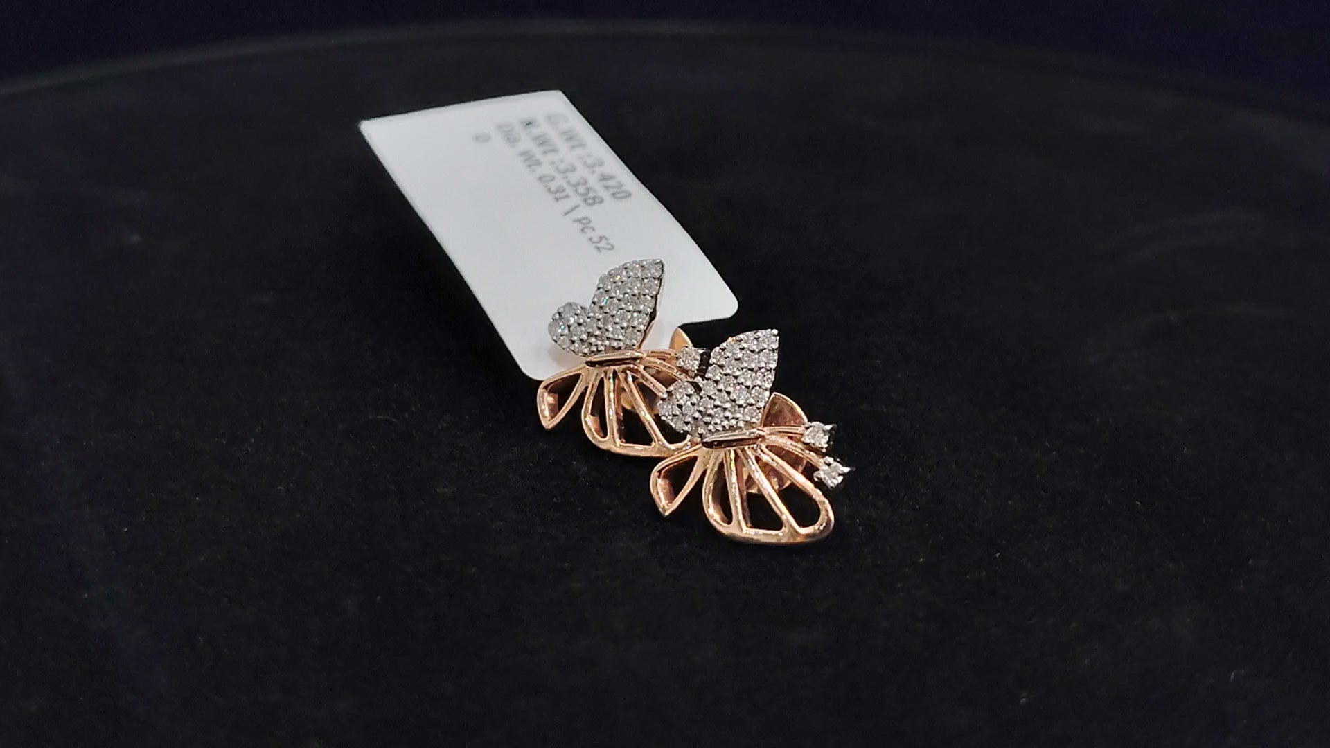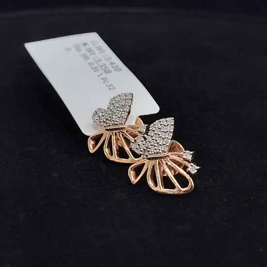 Adorned with 15 round brilliant-cut diamonds (0.33 CT total weight), each gem is carefully placed to mimic the sparkle of morning dew on butterfly wings. Weighing 3.460 grams, and measuring 14.40mm in width and 14mm in height, this piece radiates sophistication while staying light and comfortable to wear.