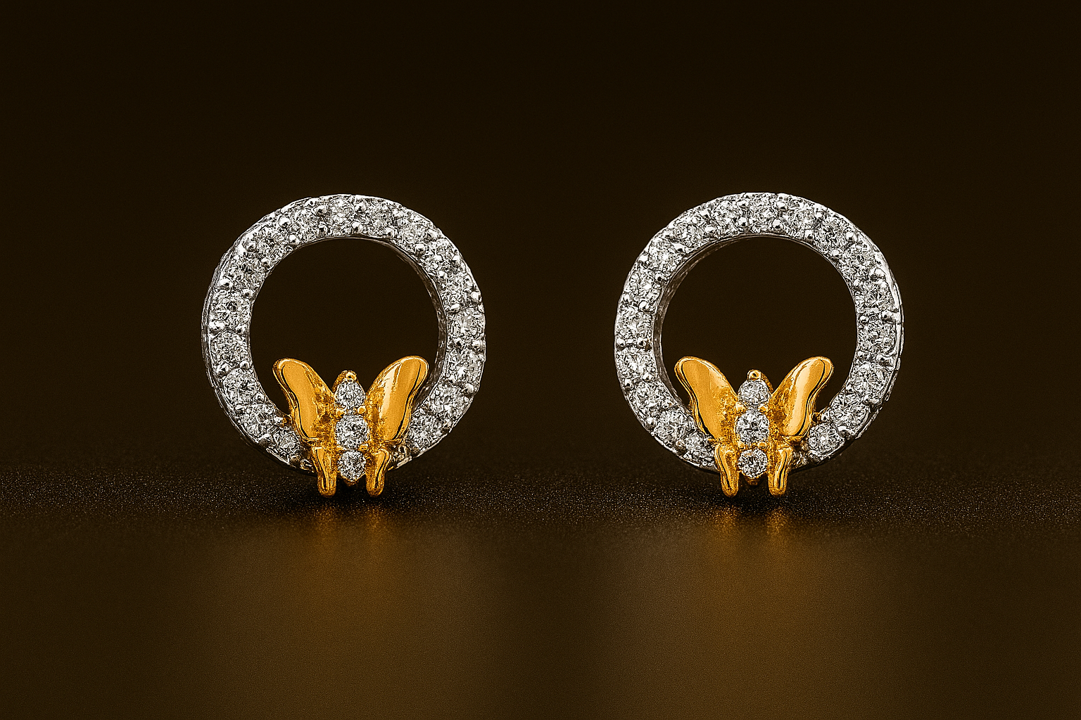 Add a playful yet elegant touch to your collection with these Ladies Butterfly Diamond Circle Earrings — a captivating blend of delicate charm and refined sparkle. Featuring a shimmering diamond-studded open circle, crowned with a beautifully sculpted butterfly in golden finish, these earrings radiate lightness, movement, and joy.