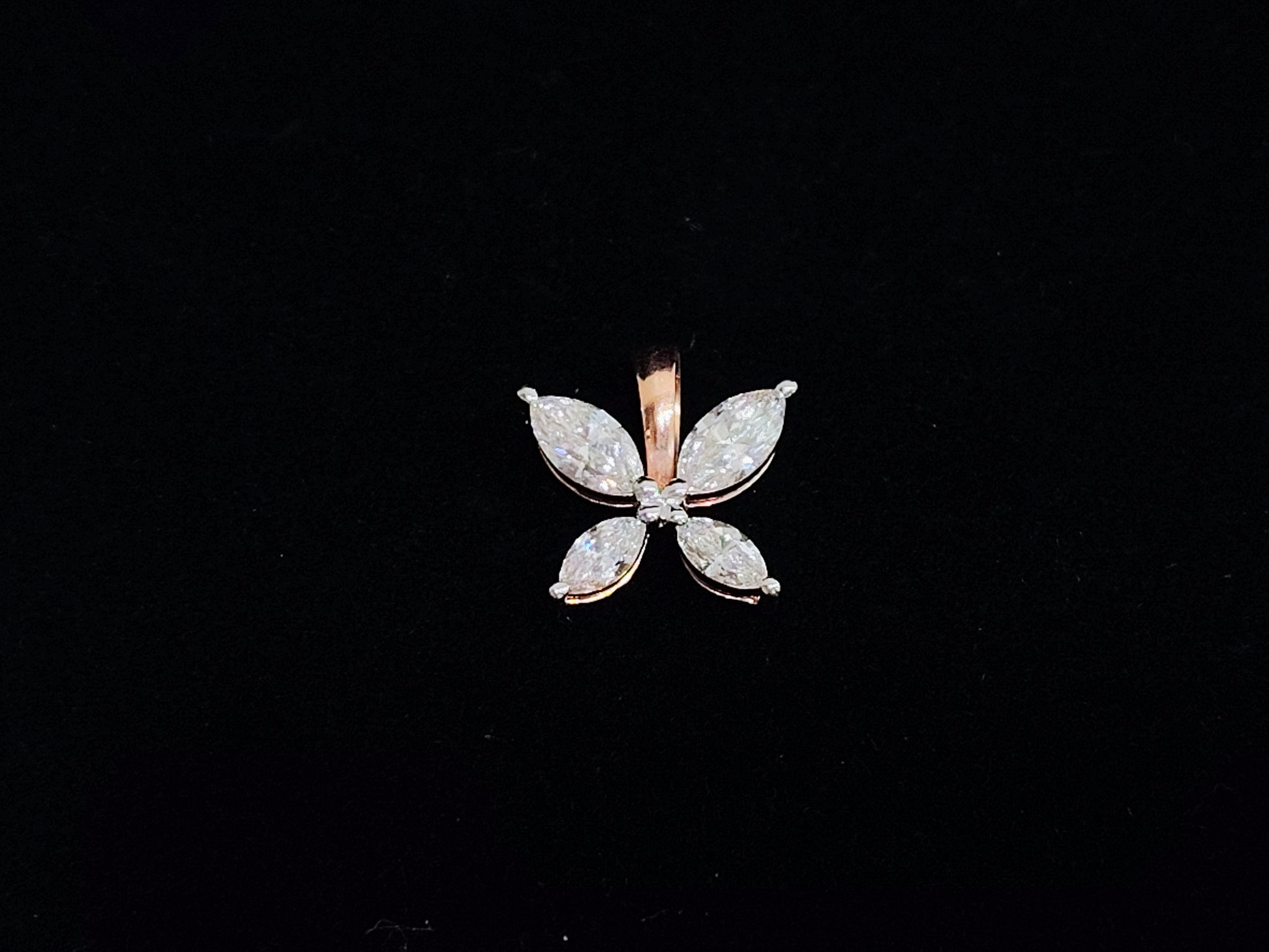 Adorned with 4 marquise-cut brilliant diamonds totaling 1.31 CT, every facet reflects unparalleled sparkle and symmetry. Weighing 1.803 grams and measuring 14.45 mm in width and 32.65 mm in height, this pendant is a masterpiece of minimalist luxury, perfect for those who appreciate refined radiance.